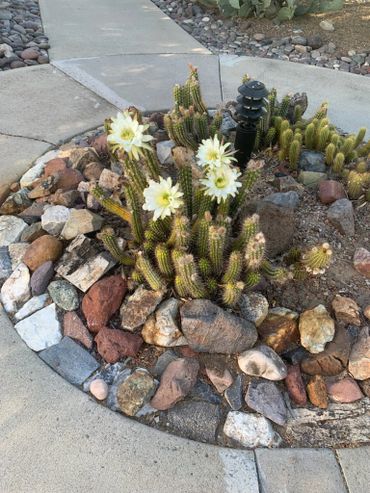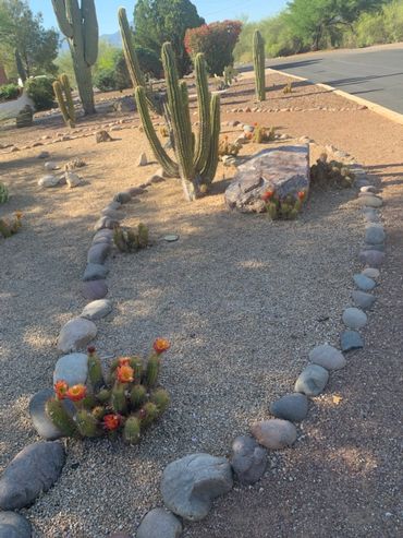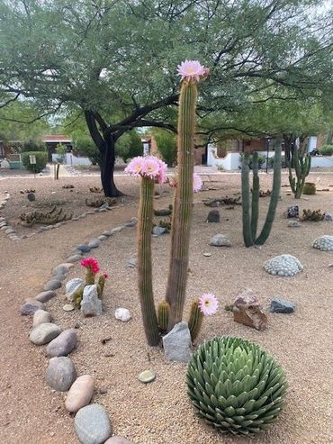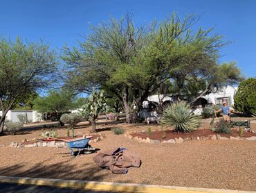 The central desert walking area at the intersection of Camino Penasco & Paseo Quinta is now nicknamed the Four Corners. On your next walk you might want to take a look at some of the changes being made. Plans are to transplant cactus from our campus and repurpose them while making a comfortable place for Villas residents to read, exchange books, relax and to linger.